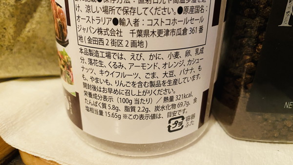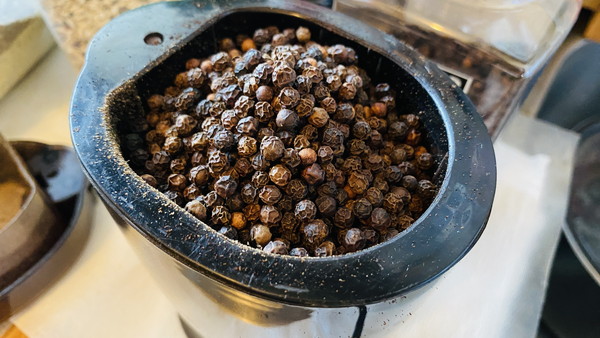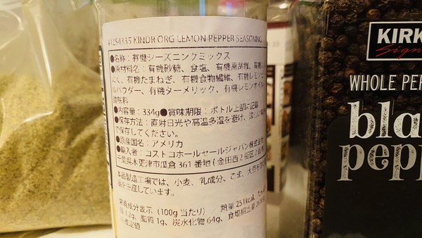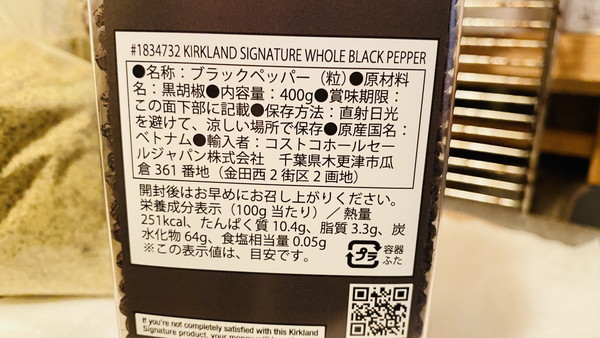 ブラックペッパーは粒で買っています。コストコ南アルプス倉庫には粉末のブラックペッパーも売ってましたが、挽き方が細かすぎる感じがしたので自分で粉にしました。