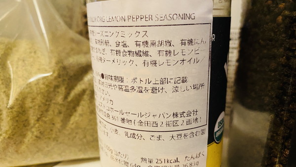 このレモンペッパーは、これ単体で使ったほうが良いです。レモンの風味は調理終了直前に少しふりかけてレモン強めに感じたい時におすすめ。肉にも魚にも合う個人的にベストなスパイスです。