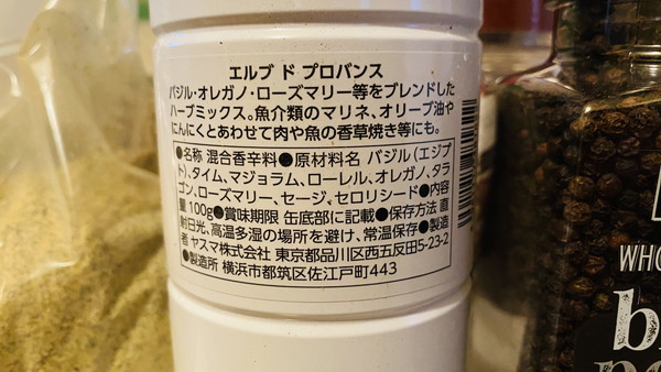 コストコの「エルブ・ド・プロバンス」は、バジル・タイム・マジュラム・ローレル・オレガノ、タラゴン、ローズマリー、セージ、セロリシードなどが混ざったエスニック風の香りが強いハーブミックスです。