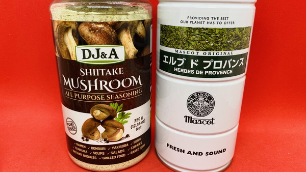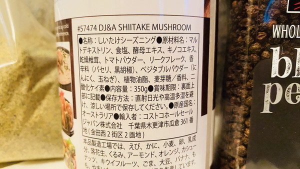 コストコのスパイスは写真の通り。あまり買ってる人がいない印象ですが、しいたけ粉末とエルブ・ド・プロバンスは味や風味の方向性が結構真逆な感じです。