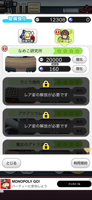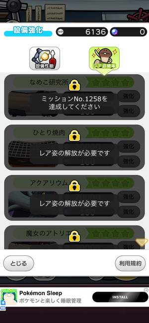 設備強化の「レア姿確率」を解放してレベルアップ