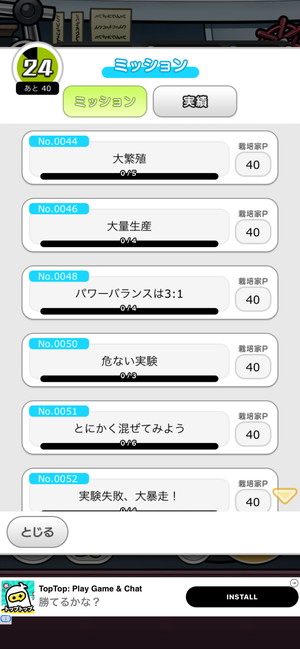 画面右上に「ノートとじい」のマークを選ぶとミッション一覧が表示されます。