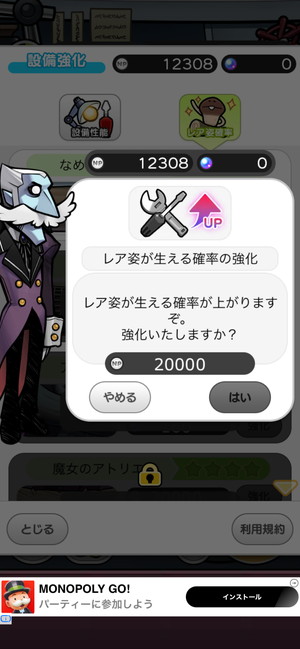 レア姿発生確率は4段階レベルアップできる(やりこみ要素)