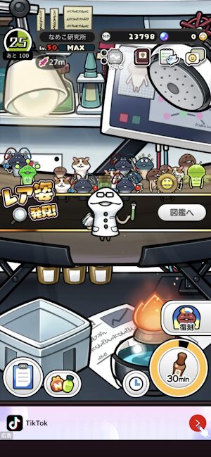画像では分かりにくいですが、白いキラキラのアニメーションが出ているなめこがいれば、それがレア姿のなめこです。