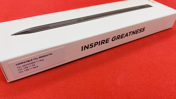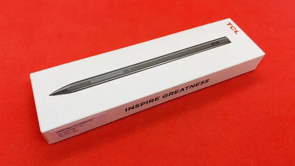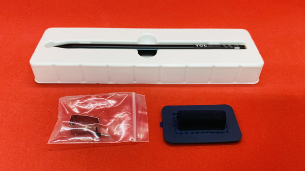 「TCL NXTPAPER 11 Plus」の外箱はA4サイズより少し大きいくらいで、およそ33cm×22cm×5cmほどあります。専用のスタイラスペンが付属されていますが、市販の他のスタイラスペンでもBluetoothで接続できるものならば使用できます。