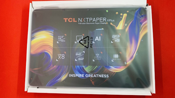 タブレット本体「TCL NXTPAPER 11 Plus」の外箱・外装