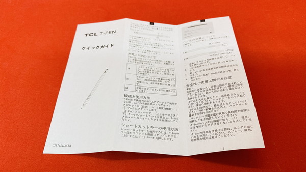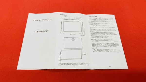 ここからは「TCL NXTPAPER 11 Plus」本体に付属していた「T Pen EPL-311A」の中身を確認していきます。操作マニュアル(取扱説明書)などは入っておらず、基本的な注意事項の紙が入っている程度です。操作マニュアルはオンライン上で確認してください。