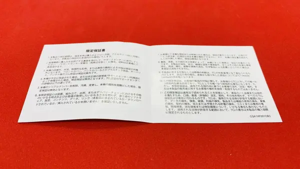 保証書はクイックガイドと一緒に折りたたまれています。気づかず捨ててしまう可能性があるくらいペラっとしたものなので、分かりやすくまとめて保管しましょう。