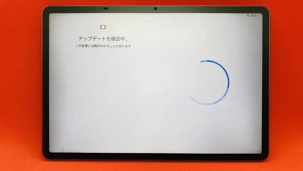 Wi-Fiに接続すると端末のアップデートが確認できます。筆者の場合は2分ほどで次の操作に移れるようになりました。画面に動きがなくても、余計な操作はせず、ひたすらじっと待ちましょう。