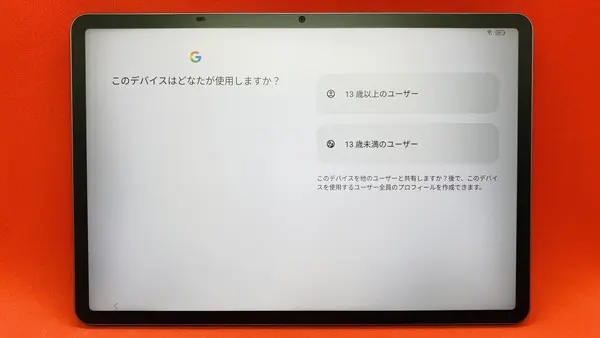 デバイスを使用するユーザーの年齢が13歳以上であるかどうか、年齢確認が必要です。自分に適した方を選択して次に進みます。