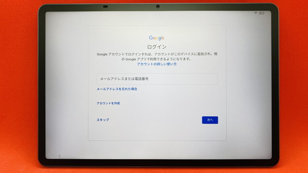 この画面で、Googleアカウントにログインすることもできますが、Googleアカウントでのログインは後に回しても問題ありません。今回はスキップを選択します。
