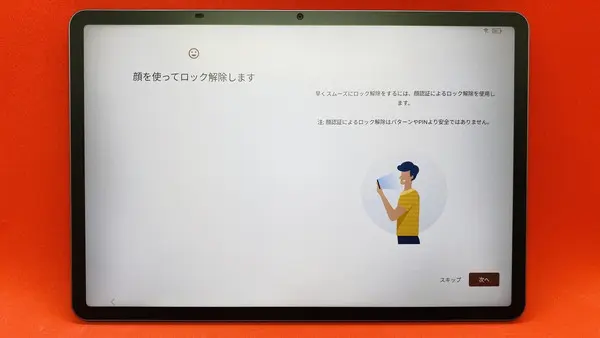 顔認証によるロック解除の設定もできますが、今回はスキップします。設定したい方はこの段階で設定してしまいましょう。