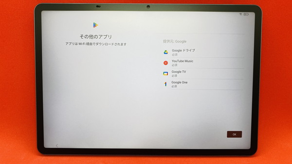 Google関連のアプリがWi-Fi経由でダウンロードされる案内表示が出るので、そのまま次に進みます。初期状態でダウンロードされるアプリは合計3GBほどです。後でいらないアプリ、全く使わないアプリは削除できます。設定が終わってからよく使用するアプリのみを残すなどカスタマイズしましょう。