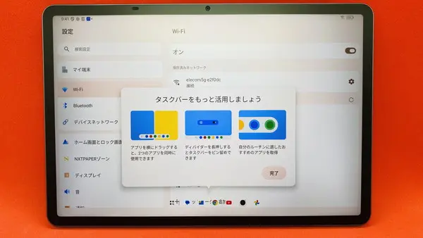 初期設定が終わった後に「設定」を開くと画面の案内、タスクバーの紹介が出てきます。