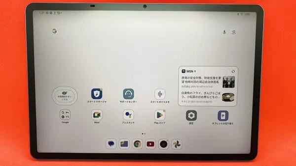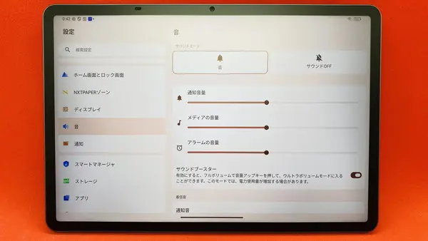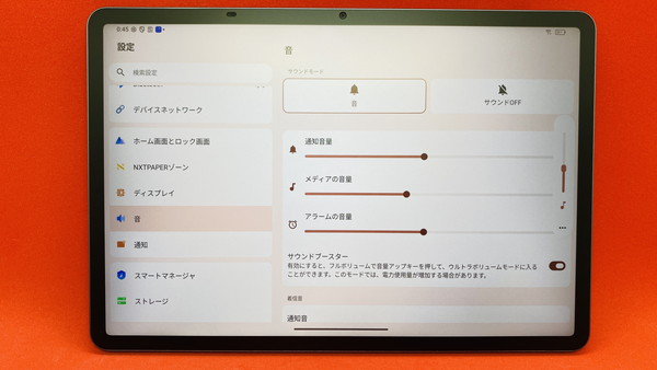 音質はクアッドスピーカーが内蔵されているためか、タブレット端末全体から音が響いているような感覚でした。音量は、音量のシークバーが半分くらいで十分に聞きやすく感じましたが、高齢者や耳の聞こえに不安がある方は音量MAXでも聞き取りづらく感じるかもしれません。