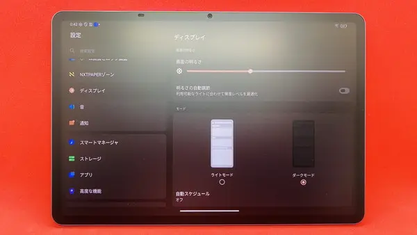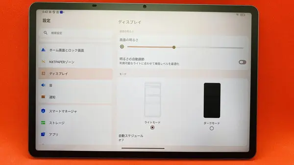 画像では右上にある「NXTPAPER KEY」ボタンを押すと「NXTPAPERモード」に切り替わります。