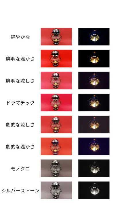 フィルターに似た機能がありますが、撮影するシーンに合わせて調整してみるのがおすすめです。