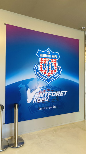 店内にはヴァンフォレー甲府の大きな垂れ幕などもあります。