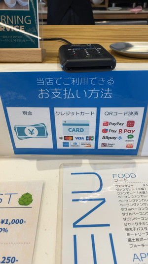 お支払いは現金、カード、QRコード決済に対応しており、だいたいなんでも大丈夫です。