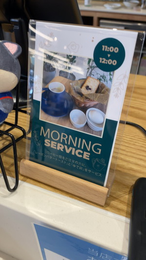 2026年4月時点でもあると思いますが、午前11時から12時の間に珈琲などを頼むとトーストなどが就いてくるサービスがあるとのことで、某愛知県のモーニングみたいなサービスもあります。