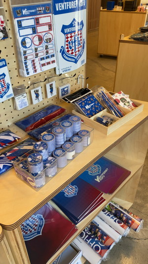 ヴァンフォーレグッズ売り場が結構充実しているように感じました。カフスボタンやピンがあるので、ビジネスマンでも推し活できます。